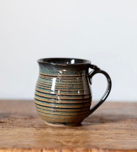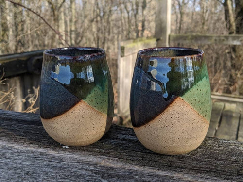 Set of 2 Handthrown Green and Blue Stoneware Wine Glasses