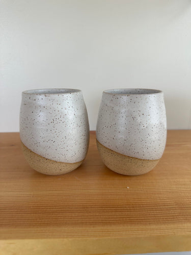 Set of 2 hand thrown stoneware wine glasses tumbler pottery in matte white